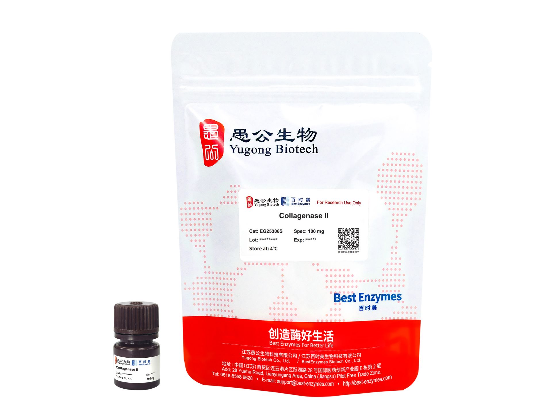 胶原酶(Collagenase)来源于溶组织梭菌(Clostridium histolyticum),是一种蛋白酶,能够特异性的识别Pro-X-Gly-Pro 序列并切割该序列中性氨基酸(X)和甘氨酸(Gly)之间的肽键,并且这种序列在胶原中出现的频率很高。胶原酶是唯一的一种可以降解广泛存在于结缔组织中的具有三股螺旋的天然胶原纤维的蛋白酶。