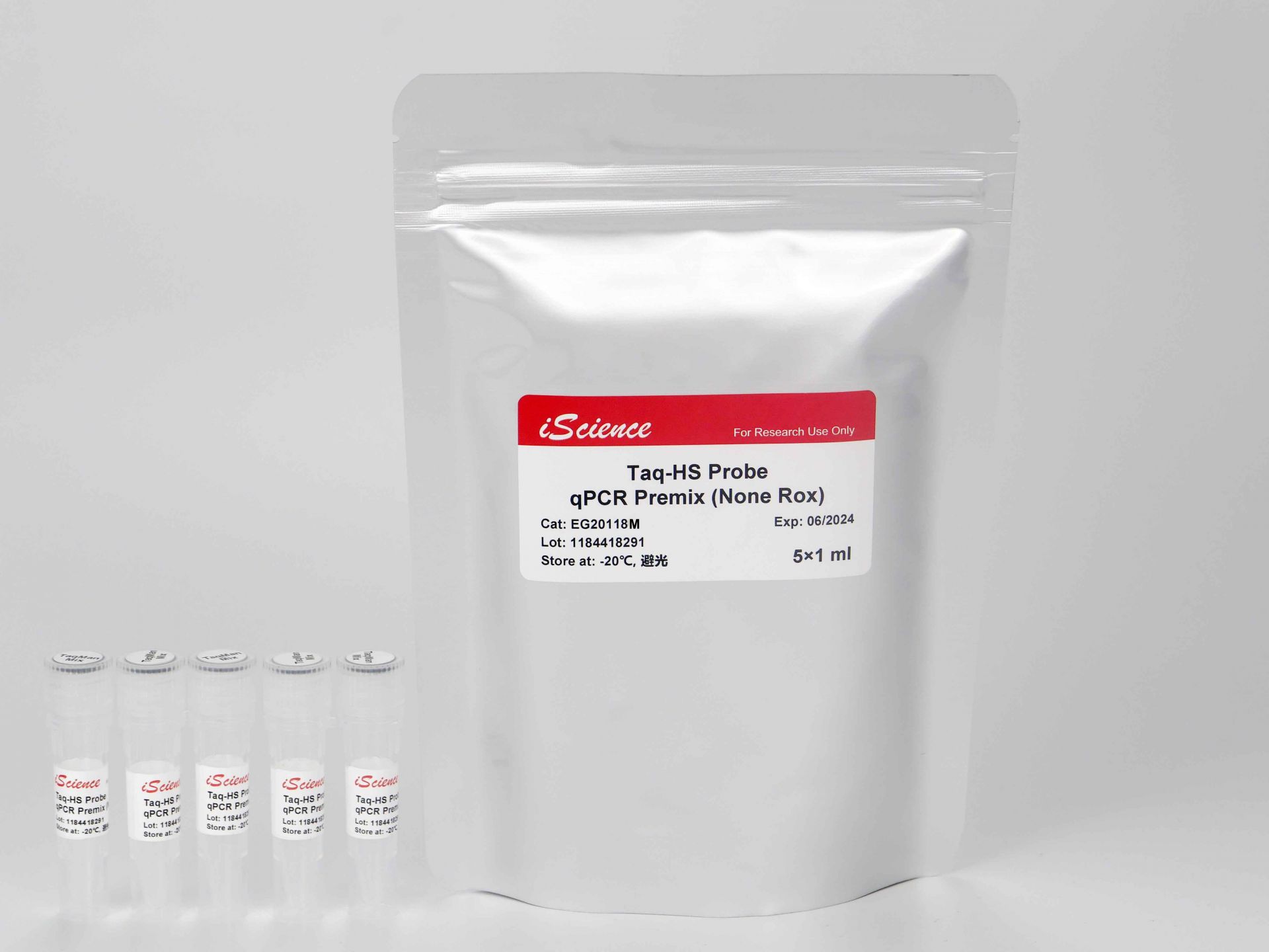 Taq-HS Probe qPCR Premix是基于独特的双组份热启动Taq 聚合酶开发的实时定量 PCR 用 2× 预混液。本产品已包含除引物和样品 DNA 以外的所有荧光定量 PCR 组分,可减少操作步骤,缩短加样时间,降低了污染几率,适用于以 cDNA 或 DNA 为样品的 TaqMan 探针法检测。