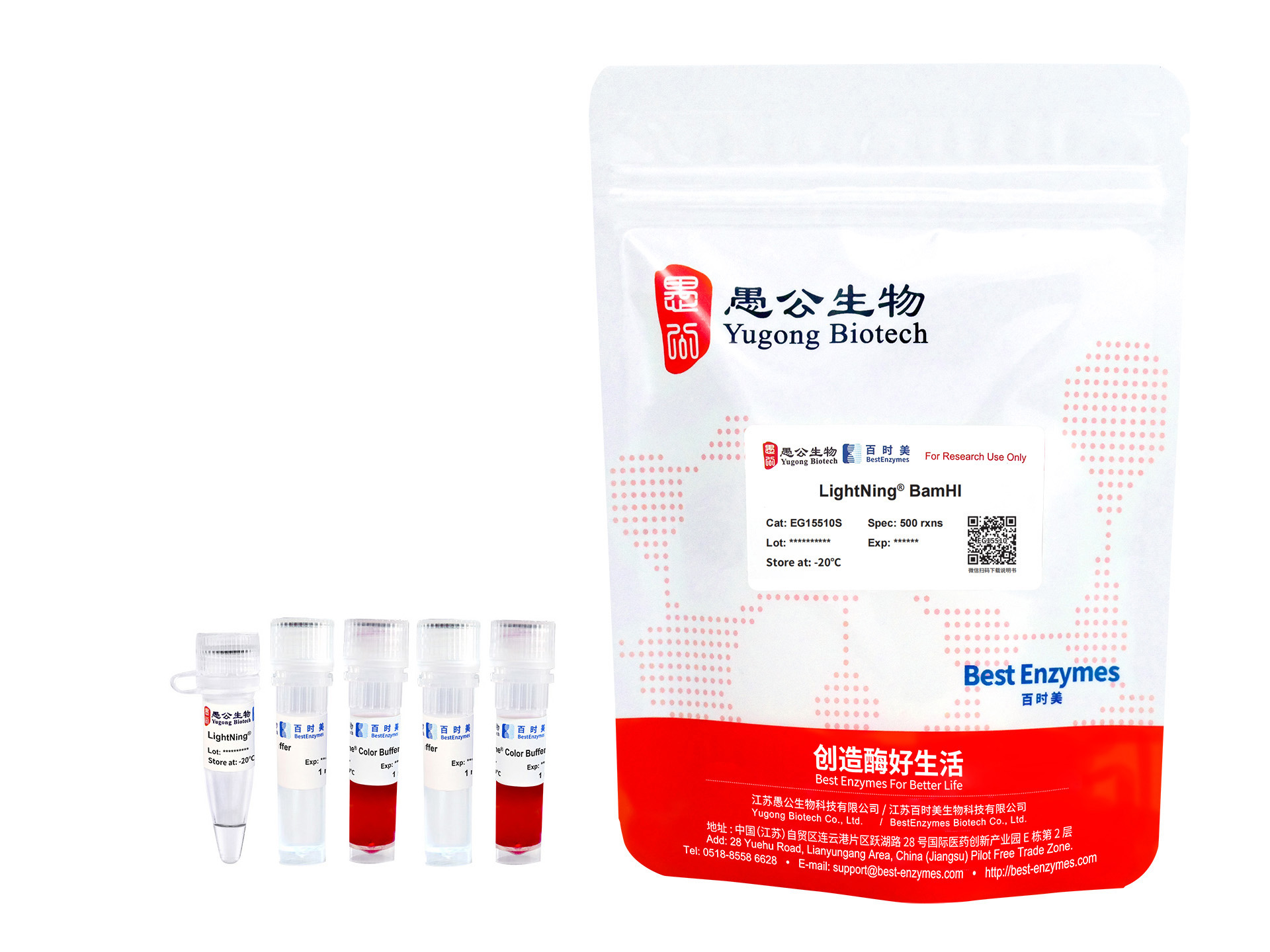 LightNing® 快速内切酶是一系列经过基因工程重组的快速限制性内切酶,适用于质粒 DNA、PCR 产物或基因组 DNA 等的快速酶切。所有 LightNing® 快速内切酶在通用的 CutOne® 或 CutOne® Color Buffer 中都具有优良的活性,能够在 5~15 分钟内完成酶切。此外,百时美去磷酸化、连接试剂在 CutOne® Buffer 中均具有 100% 活性,支持一管化反应,提升“酶切 - 修饰 - 连接”的体验。